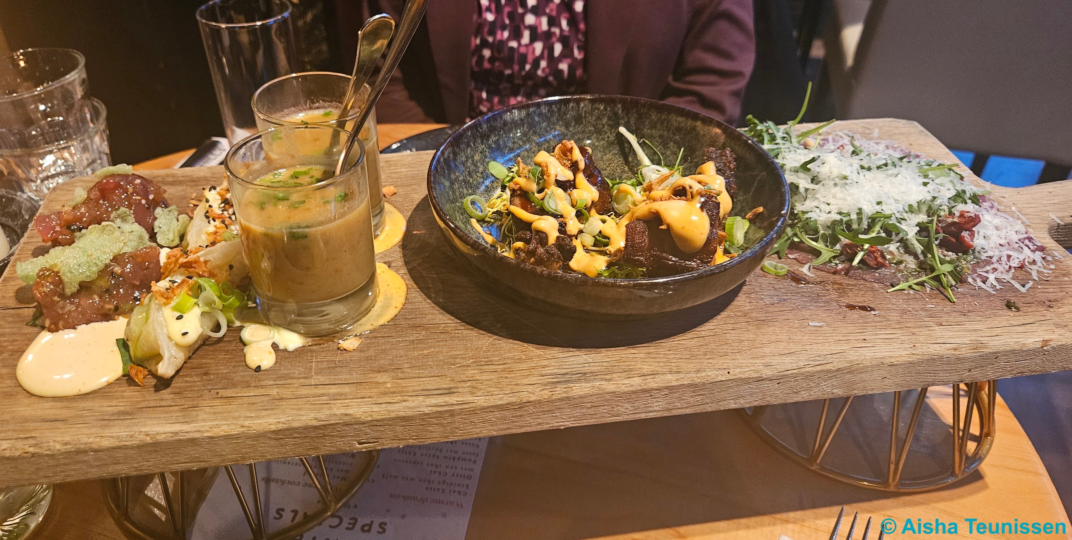 Er is veel nagedacht om alles in thema te houden en dat waardeer ik zeker. Visitekaartje is zelfs van hele goede kwaliteit, heel dik karton. Je kan ook zien dat er meerdere mensen zitten die er vaker komen. Mijn verrassingsmenu bestond enkel uit dagspecials, weet niet of ze dit standaard doen. Wel vind ik het jammer dat bij geen van de dagspecialiteiten de prijzen worden vermeld op de menukaart, ook niet op het bord.