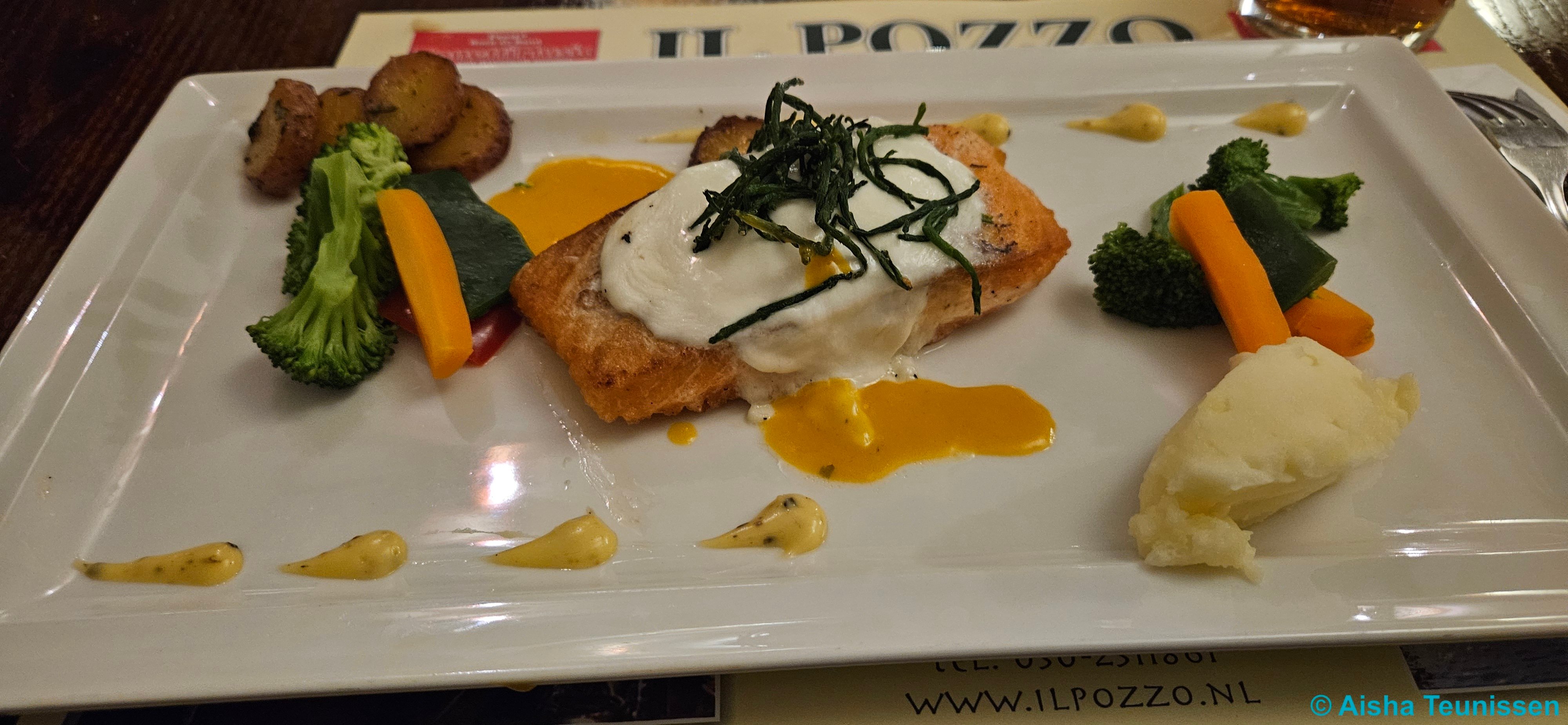 Normaal zou ik voor pasta gaan, maar dit keer wilde ik iets anders proberen bij de Italiaan. Ik koos voor de Vis Salmone, een zalmfilet uit de oven met mozzarella, zeekraal en wilde spinazie. Ik vond de zalm niet heel bijzonder, voor mij persoonlijk net iets te droog. De groente eromheen waren wel lekker. Ik zou zelf alleen niet dit bord hebben uitgekozen, het voelde nu namelijk erg leeg aan. Ik vond de prijs voor wat ik kreeg ook aan de hoge kant.