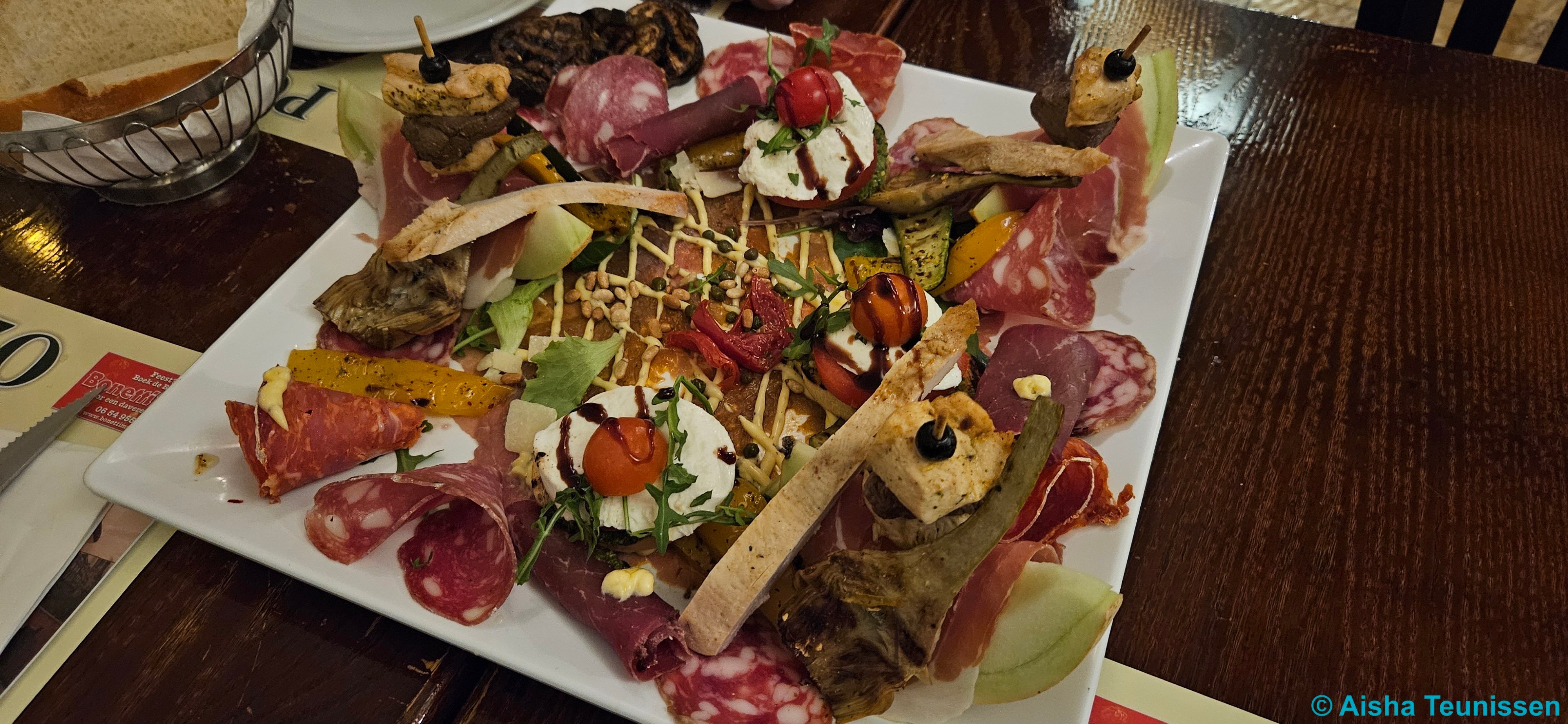 Ik ben dol op Italiaans eten. Er staan er meerdere nog op mijn lijst om te proberen. Toen ik vrienden voorstelde om naar een Italiaan te gaan, stelde een vriend van mij deze voor. Hij had hier al vaker met zijn werk gegeten en vond deze erg goed. Ze zitten aan de Oude Gracht, dus op een mooie maar minder bereikbare plek. Vooraf kregen we brood met beleg.