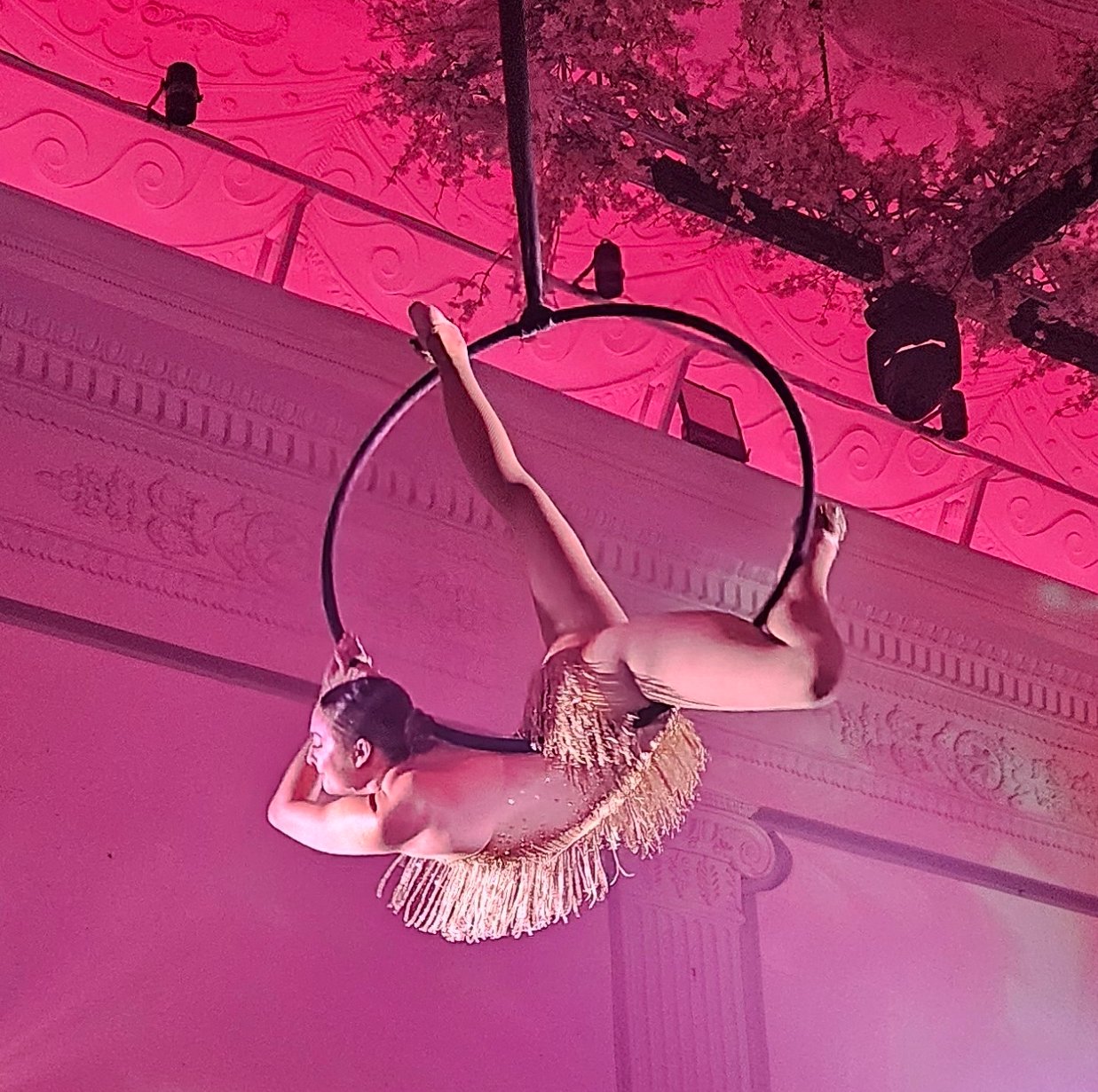Between each course, there's a performance by different artists and a variety of acts. The opening act was pole dancing by Anna Liisa. The second act was singing by Paul, who later performed another song. The third act was Pauliin, who first showed off her snake skills in a hoop (arial) and later literally returned as a snake. There was also a female singer, Tally. The DJ is there all evening, and in our case, it was Roelove.