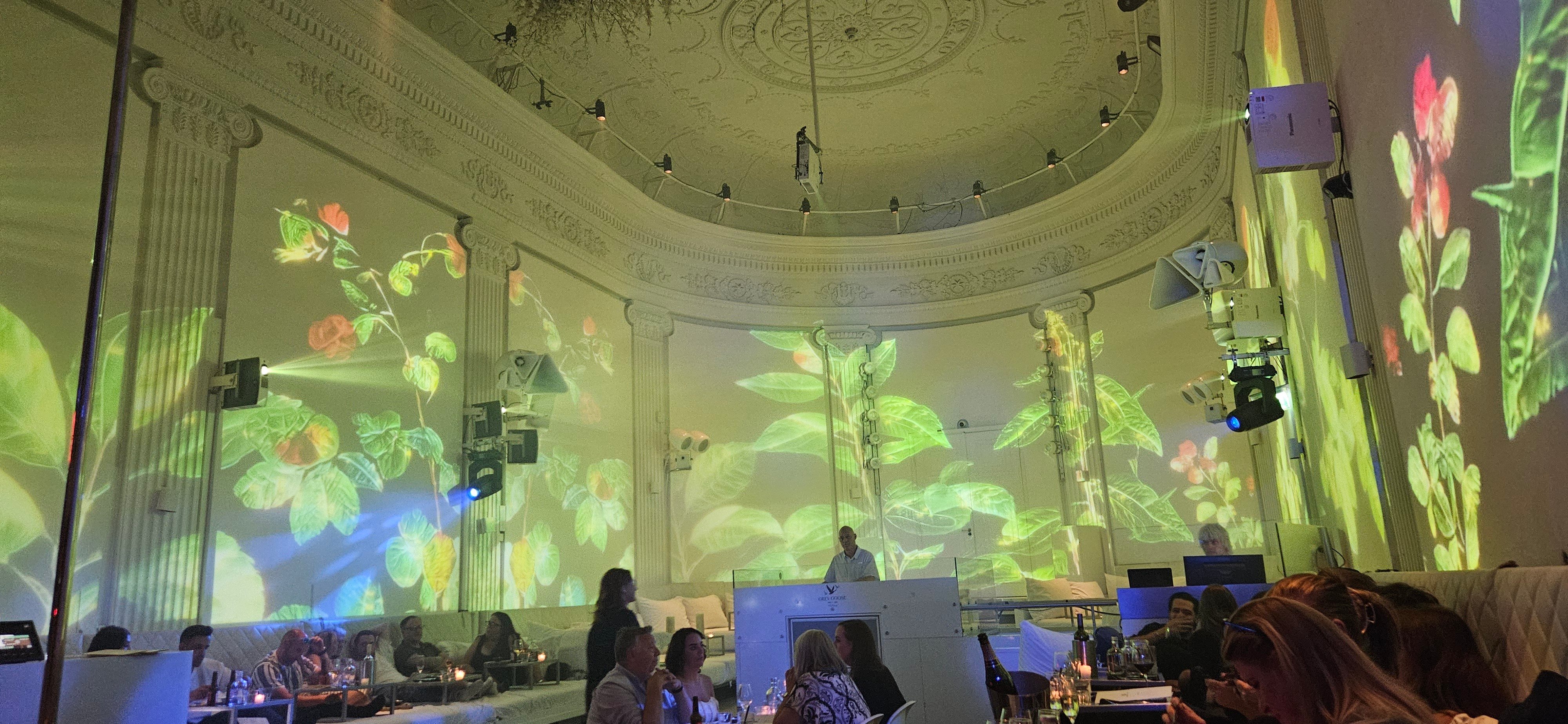 Ik vond het mooi dat er aan de achterkant grote schermen waren waar dingen op geprojecteerd konden worden. Het thema Bohemian Bloom, zoals ook aan de ingang stond, was daar goed te zien. Het muziek dat gedraaid werd vond ik ook goed passen. Ik vind het persoonlijk goede muziek en remixen, maar past ook goed bij de sfeer die de locatie geeft. Het licht zal af en toe wel wat beter afgestemd mogen worden, soms vond ik het te donker of juist te fel om de act te zien.